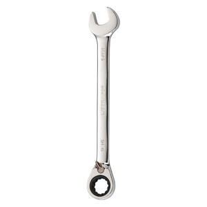 Ratcheting Wrench, Alloy Steel, Chrome, Head Size 9/16 in, Overall Length 7 1/2 in, Head Offset Angle 15 Degrees , Opening Angle (Deg.) 15 Degrees , Offset, Head Thickness 3/8 in, SAE, Rounded