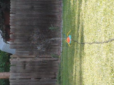 A: The sprinkler uses 3 AAA alkaline batteries, which are included.