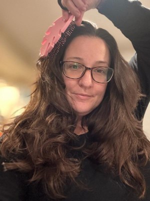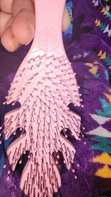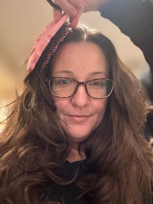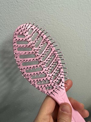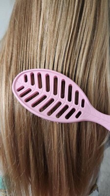 [This review was collected as part of a promotion.] My only complaint about this brush is that it’s pink—my least favorite color—but I will deal with it. It makes my hair feel so soft and does so effortlessly. It doesn’t break my hair and helps with tangles, painlessly.