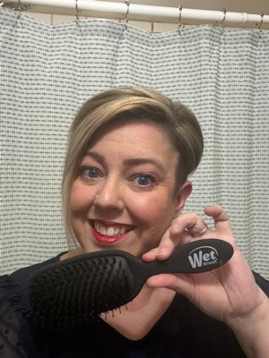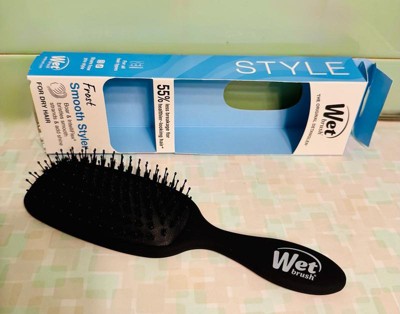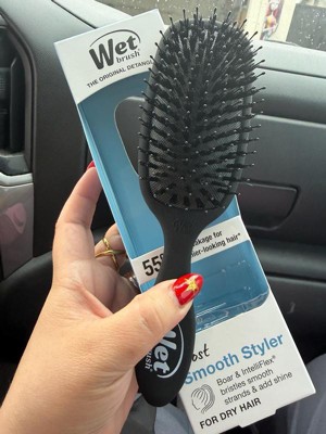 [This review was collected as part of a promotion.] I love this Wet Smooth Styler Brush with boar bristles that smooth strands and add shine to all hair styles. It's easy to handle while using it to blow dry my hair straight, and it works perfectly. It's good for pulled back, sleek styles and to distribute dry shampoo, it's a great brush. It's easy to use on my long hair without pulling it, and easily detangles my hair.