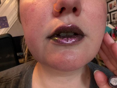 [This review was collected as part of a promotion.] The pigment is exactly as shown in the tube. The foil and glitter is absolutely gorgeous and intense. The feel of the gloss isn’t too gritty as it would seem, it is hydrating. I’m taking one star off as this isn’t a very wearable everyday color and would be suited for special occasions.