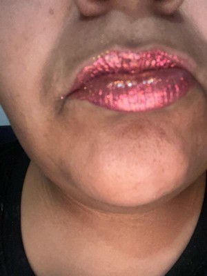 [This review was collected as part of a promotion.] Packing super cute. Scent I can’t pinpoint it but it does not smell bad. The texture now it’s different sticky yet you can feel the specks of foil or glitter on you lips. This product is super pigmented and shines all at the same time. Honestly for me too busy but on someone who can make the lips the main focus point it may work better.