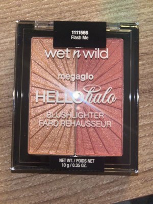 The wet and wild blush lighter is really pretty. I got the color flash me which has a golden bronze and reddish pigmented colors. Mixed together leaves a beautiful light red bronze to look which will definitely accentuate the cheekbones and collarbones. The texture is light not creamy but press powdered feel.