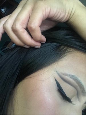 Wet n wild has a great product here. It is super easy to apply; the brush that is in it does really nice line work. It does take a second or two to dry. I think the packaging is decent; it’s just a regular plastic shell on cardboard. It does not have a smell to it unless you get super close. It’s not offensive at all. Sometimes it is difficult to remove because you have to really scrub to get it off, depending on the remover that you use. I suggest micellar water or wipes.
