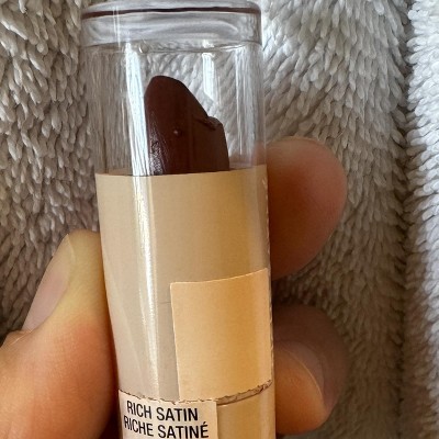 Richly-pigmented, creamy, lasting color, and a velvety smooth texture, this Rich Satin lipstick delivers a luxurious sheen and buildable color. Enriched with vitamin E and argan oil, this non-drying formula leaves lips feeling smooth and comfortable.