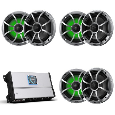 This bundle includes a Wet Sounds HTM-6 Amplifier and 3x Wet Sounds RECON 6 XW-W RGB LED Recon Series Coaxial Speakers.