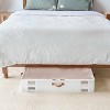 Organize extra linens, out-of-season clothing out of sight in this convenient Underbed Fabric Bin with Lid from we think storage. The rectangular storage bin is made of fabric for a soft, flexible and light feel. Featuring a simple rectangular design and built-in Faux leather handles on multiple sides, the Underbed Fabric Bin is conveniently sized to slide under a bed or shelf. Showcasing a transparent lid and zippers to let you know the contents immediately and easy to open it.
