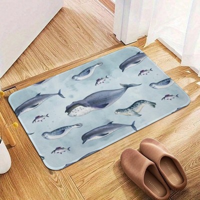 Whale Pattern Bathroom Rugs Winter Bath Mat Absorbent Non Slip Bathroom Mat Christmas Soft Floor Carpet 16x20 Inches