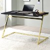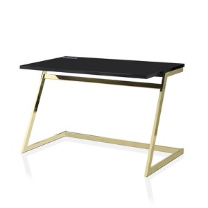 Your work hustle doesn't have to be a drab experience; this desk is your energizing business partner. Not only is it poised to take on the day's load, but it quite literally charges all your devices with a built-in power strip. Are you going for a cool and collected gloss white on chrome plating or a daring gloss black on brass plating?