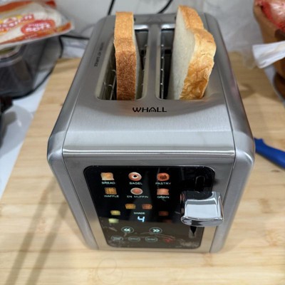 WHALL Touch Screen Toaster 2 Slice, 1.5'' Wide Slot Stainless Steel Toaster with Digital Timer, 6 Bread Types & 6 Shade Settings, Crumb Tray