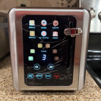 - TOUCH SCREEN AND DIGITAL COUNTDOWN:TOUCH SCREEN: Touch screen toaster interface with clear icons for you to make selections to accommodate your toasting desires.