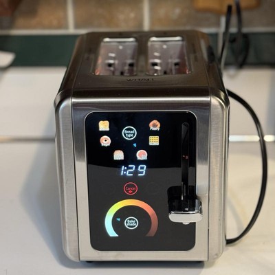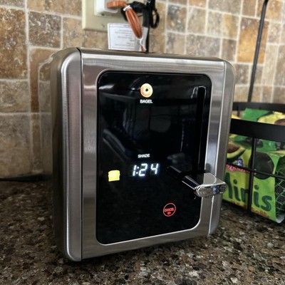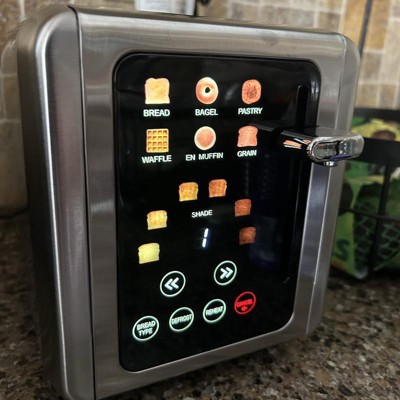[This review was collected as part of a promotion.] Welcome to the future. This toaster has it all. It can toast two slices of bread at one time. The touch screen makes it easy to pick and choose how dark or light you’d like and what type of item you are trying to toast. This helps to prevent your item from burning. The lever to push down is nice and easy to press and it’s very quiet too. The price was a bit expensive for a toaster but it should last for years to come and has all the bells and whistles. I received an incentive to write this review.
