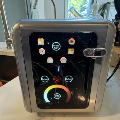 [This review was collected as part of a promotion.] I am impressed with this toaster. I've only ever had toasters with very basic controls so this is pretty nice to have a touch screen option with so many options. The touch screen seemed to work very well so far and it was easy to navigate. The bread was toasted well. It has a normal capacity for two items at a time. I like the stainless steel look. I think the only thing I would change is to make the cord longer I received an incentive to write this review.