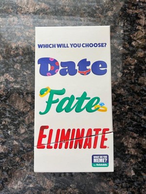 - The judge draws three Temptation cards — either all from the same category or all different. Now everyone chooses which they think the judge will DATE, FATE, and ELIMINATE by laying their cards down accordingly. Then the judge announces their picks — score a point for every one you guessed correctly!