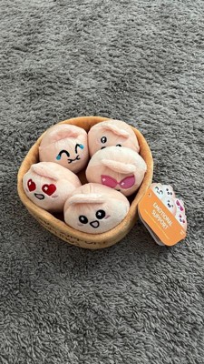 - Easter Plushies: Includes 1 cozy container and 5 individual plush dumplings. Each funny character comes with its own name, personality, and expression. Choose a favorite or take the whole crew with you.