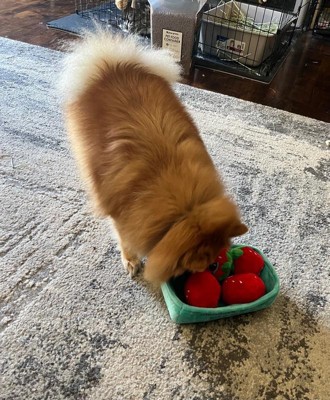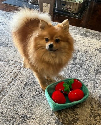 [This review was collected as part of a promotion.] My little Pomeranian loves him emotional support strawberries. He dug right in and was tossing them around. He even liked the basket they come in.