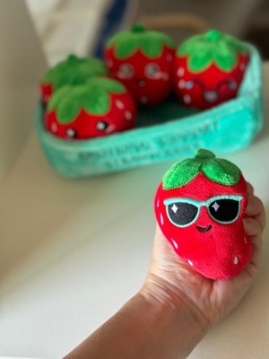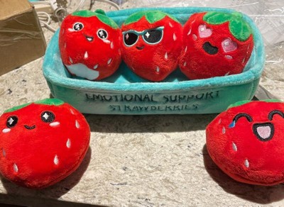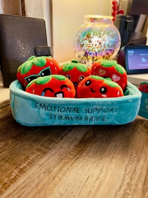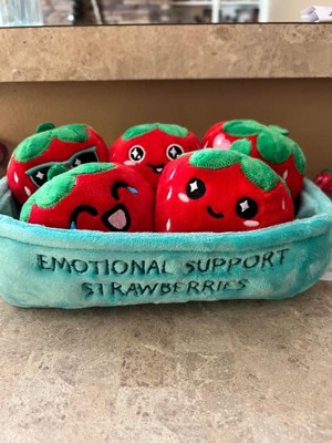 [This review was collected as part of a promotion.] These emotional support strawberries are the cutest ever. I decided to detach each strawberry and have been letting my toddler play with them she loves squeezing them and putting them back in the basket one by one. Each strawberry emoji is different one is the heart eyes one has the sunnies there a cry laughing one and a smile one and the shiny eye one too!