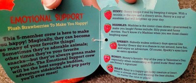 [This review was collected as part of a promotion.] These emotional support strawberries are super cute and soft. We were excited to open and read about them. They each have a different name and story. My kids had a great time guessing what strawberry matched each of the names. They were definitely a big hit in our household and my kids took turns sleeping with them. It’s also a fun way to talk about different emotions with our kids. They can see the visual differences in their faces.