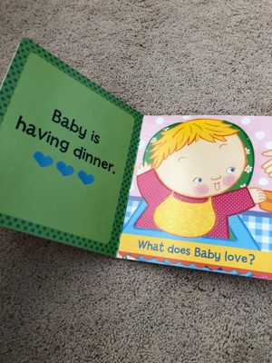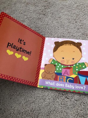 Our 18 month old son loves these lift the flap books! This book talks about playtime, pets, dinnertime, bedtime, etc. Would recommend.