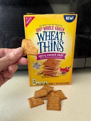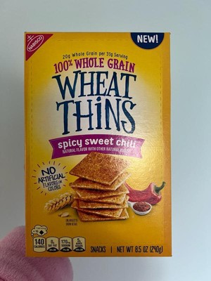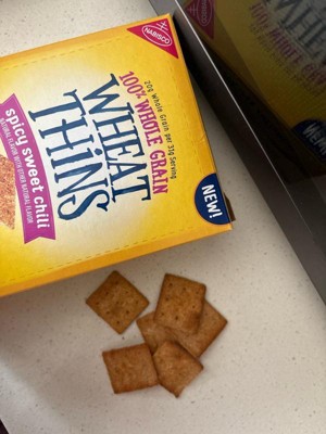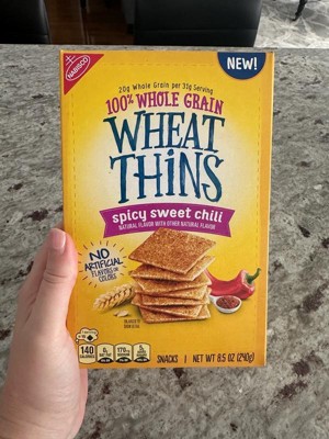 - One 8.5 oz box of Wheat Thins Spicy Sweet Chili Snacks, Whole Grain Wheat Crackers (packaging may vary)