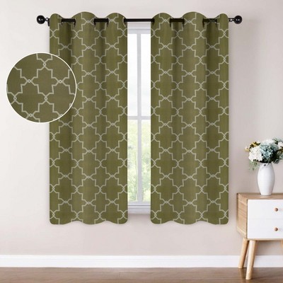 Whimsical Abstract Shimmer Room Darkening Semi-Blackout Curtains, Set of 2, 42"x63", Olive Green - Blue Nile Mills