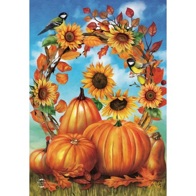 Whimsical Fall Primitive House Flag Autumn Sunflowers 28" x 40" Briarwood Lane