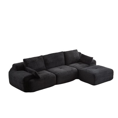 Whisen Modern Memory Foam Compressed Chaise Longue with Movable Ottoman Corduroy Fabric