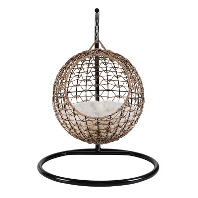 Whisen 28” Cat Condo & Pet Beds, 3 Story Cat Hideaway, Barrel Shaped Small Cat Tree for Indoor Cats - Khaki