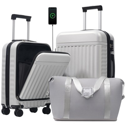 Travel smarter with this all-in-one luggage set, crafted from lightweight, impact-resistant ABS for lasting durability. The 20-inch carry-on features a front-opening laptop compartment for quick access, plus an integrated USB charging port—just plug in your power bank to keep devices powered on the move. Effortless navigation is ensured by smooth 360° spinner wheels and sturdy telescopic handles. The included 28-inch checked suitcase offers ample space for longer journeys, while the travel duffel provides extra room for gear or souvenirs. Stay organized with a wet-dry separated toiletry bag, keeping damp items apart from dry essentials for better hygiene. TSA-approved locks add security and peace of mind. This versatile set is designed to meet the needs of individuals, couples, or families, making every trip convenient and stress-free.