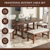 This traditional dining set features a solid rubberwood table extending from 60" to 78" with an 18" removable leaf (400lb capacity). The set includes 4 upholstered chairs (250lb capacity each) with padded cushions and a sturdy 39.8" bench (500lb capacity). Crafted with trestle-style legs for stability, the table showcases a curved top design with 0.9" thickness. Anti-scratch foot pads protect floors while the espresso finish with beige upholstery adds classic elegance. Easy assembly with detailed instructions makes this durable set perfect for family meals and gatherings.