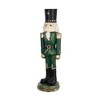 Command attention and spread classic holiday cheer with this stately wooden nutcracker soldier figure. Expertly crafted from 100% polyresin, this piece masterfully replicates the rich, detailed appearance of hand-painted wood, offering a traditional aesthetic with modern durability. Standing with proud military posture, the nutcracker features intricate detailing on its uniform, from braided accents to a vibrant color palette, embodying the timeless spirit of the season. Its commanding presence makes it a perfect focal point for holiday mantels, a welcoming sentinel by the entryway, or a dignified addition to any Christmas tablescape. Universally appealing, it seamlessly complements decorations from classic to contemporary themes. Beyond its decorative prowess, this nutcracker serves as a substantial and cherished holiday gift, destined to become a treasured heirloom that brings joy for countless seasons to come.