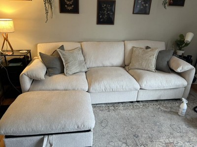 I was nervous with there not being many reviews, but this turned out great! The pillows on the arm rests pop up a little but hoping they will go down over time. This came in two boxes which arrived on different days which was tough, but once I had everything I was able to assemble to couch by myself. Overall very satisfied with this purchase and would recommend!