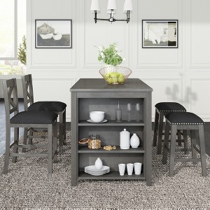 - Space-Saving Design: Features a 3-tier storage shelf for dishes and essentials.Chairs and stools neatly tuck under the table to maximize space.
