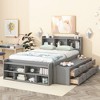 This innovative full-size bed combines functionality with modern design, featuring a built-in bookcase headboard with multiple compartments for books and decor. The 6 smooth-gliding underbed drawers and 5-compartment bed-end storage case maximize space efficiency, keeping your bedroom organized. Crafted from premium pine wood with 10 supportive slats, it ensures durability and comfort. Perfect for small spaces, this bed eliminates the need for extra furniture while offering versatile storage solutions. Easy to assemble with included instructions and hardware (delivered in 3 packages), it seamlessly blends practicality with contemporary style.