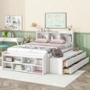 This innovative full-size bed combines functionality with modern design, featuring a built-in bookcase headboard with multiple compartments for books and decor. The 6 smooth-gliding underbed drawers and 5-compartment bed-end storage case maximize space efficiency, keeping your bedroom organized. Crafted from premium pine wood with 10 supportive slats, it ensures durability and comfort. Perfect for small spaces, this bed eliminates the need for extra furniture while offering versatile storage solutions. Easy to assemble with included instructions and hardware (delivered in 3 packages), it seamlessly blends practicality with contemporary style.