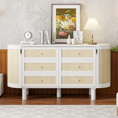 - Sleek Drawer-Front Design: Camouflaged drawers with handwoven rattan accents offer rustic-modern charm, seamlessly blending with various decor styles.