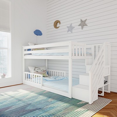 Whisen Full over Full Metal Low Bunk Bed with Ladder and Guardrail