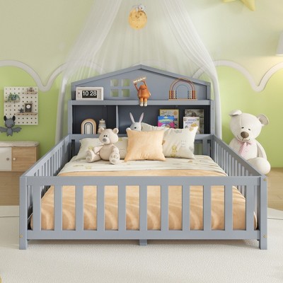 This full size bed combines functionality and style, featuring L-shaped bookcases, a USB charging station, and two storage drawers. Its space-saving design maximizes bedroom space, while the attached bookcases provide ample storage for books and decor. The built-in power outlets and USB ports offer convenient device charging. Two smooth-gliding drawers keep your room organized, and the durable pine and composite wood construction ensure safety and longevity. Perfect for small spaces, this bed blends practicality with charm for a comfortable and organized home.