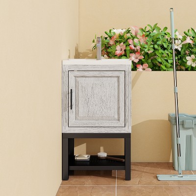 Whisen 18.5" Modern Floating Bathroom Storage Cabinet Bathroom Vanity with Ceramic Sink and Left Side Storage
