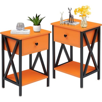 Whisen Modern Minimalist Nightstand with 2 Storage Drawer, Golden Metal Handles and Legs, Unique Textured Design - Orange