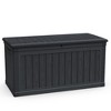 Upgrade your storage with this versatile deck box, perfect for both indoor and outdoor use. Its double-wall construction and all-weather resin ensure superior durability, while the wood-like texture adds a touch of style to any space. The generous capacity keeps patio cushions, gardening tools, or pool supplies neatly organized. An easy-lift lid makes access effortless. More than just storage, it doubles as a sturdy bench or table, supporting up to 440 lbs—ideal for extra seating or serving space. This deck box blends seamlessly into patios, gardens, or entryways, offering reliable protection and practical functionality for everyday needs. Enjoy lasting quality and multipurpose convenience in one sleek, modern solution.