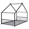 Introduce a playful touch to your child's bedroom with our unique playhouse bed, featuring a charming roof design that creates an adorable space for both sleeping and play. The semi-enclosed structure provides a comforting atmosphere, ensuring your kids enjoy a restful sleep while maintaining optimal air circulation. Crafted with a sturdy metal frame, this house bed offers enhanced stability and durability, and comes with slats included, eliminating the need for box springs or foundations. It's the perfect combination of fun and functionality for your little one's room!