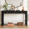 This elegant console table masterfully blends timeless retro styling with practical functionality for modern living spaces. Featuring a distinctive wood grain pattern that adds natural warmth and character, the piece showcases carefully rounded corners and curved legs that create a cohesive, safety-conscious silhouette perfect for households with children and pets. The sturdy construction includes substantial solid wood legs with adjustable foot pads that ensure stability on various floor surfaces while providing protection against scratches. Versatile storage solutions comprise three drawers in two different sizes with vintage-inspired handles, offering organized space for items ranging from books to small essentials. The generous tabletop provides ample display area for decorative objects while maintaining substantial weight capacity. Though partial assembly is required, the straightforward process results in a sophisticated furniture piece that seamlessly integrates into entryways, living rooms, and hallways while delivering both visual appeal and everyday utility.