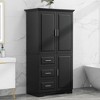 Whisen Tall and Wide Storage Cabinet with Doors, Three Drawers and Adjustable Shelf for Bathroom, Office, Study