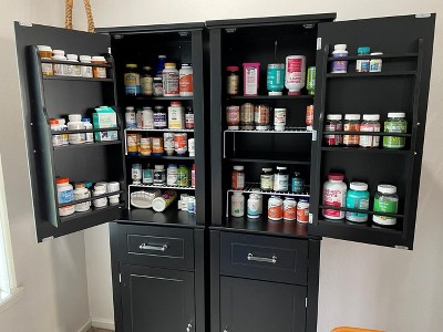 Love the design, perfect for the vitamin cabinet we had in mind, especially if you add cabinet shelves from the Container Store like we did to double the shelf space. We bought two of these units and had a lot of trouble stabilizing the bottom half of the 2nd one. Finally we flipped it over and drilled in 4 additional wood screws of our own, and all was good. Another issue we had was attaching the handles - the holes you put the screws in are not quite far enough apart. If you put the screws in at an angle, it works out ok. Lastly, the T panels for the back side bottoms were an 1/8" too tall. We borrowed a sander to shorten them. Some kind of cardboard, so not too hard to do. Do yourself a favor and throw away the 3-in-1 cam connectors provided (part #2) - they are plastic, break easily, and don't stay in well - and no extras are provided. We bought Hillman cam connectors from Lowe's that are zinc and work much better. You need 34 of them. The connectors work best if you leave the 3-in-1 bolts (part #1) up just a little and not quite flush with the board you screw them into. Overall the instructions included were very good, better than most.