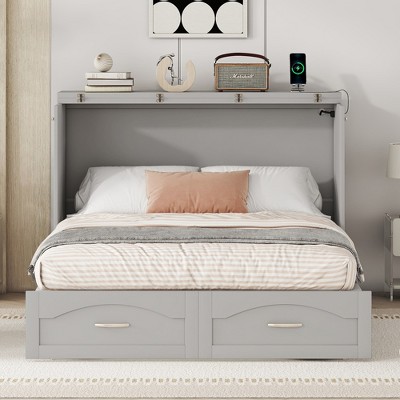 Whisen Twin Size Bed & Floor Bed, Wooden Structure with Fence Design for Safe & Imaginative Sleep Spaces For Children - Grey