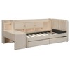Whisen Twin Size Upholstered Daybed with Drawers, Shelves, Flip Cabinets & Side Table