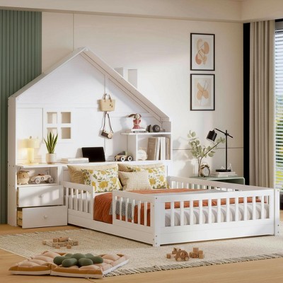Whisen Twin Wood Daybed & Multi-functional Bed with Two Storage Drawers and Study Desk