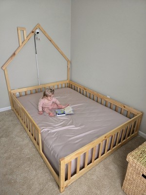 We love this floor bed! We are a co-sleeping family and my daugher never really took to sleeping in her crib much, so we bought this in the Queen size. It gets our daughter off our master bed, and we can still co-sleep with her in her room, then leave once she's asleep. It was pretty simple to put together (we decided not to install the door). There are no wood slats so we made sure to get a thick enough mattress that will sit right on the carpet. Overall, great purchase!