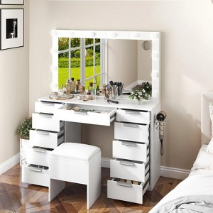 White 11 Drawers Vanity Desk Makeup Dressing Table Mirror LED Light with Stool